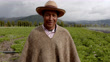 Latin American male farmer wearing a typical ruana and a hat facing camera very cheerfully at an agricultural field - Agricultural lifestyles