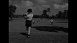 Little girl picks up ball out of hole / children run to registration tent / children register with man / boy tees off / CU girl / girl tees off / small boy swings club twice, misses ball both times and spins around / boy tees off / CU of golf ball and child's shoe, then pan up to boy's face as he sets ball on tee / boy tees off / little boy misses several swings while attempting to tee off / girl putts as adults watch / boy putts as another boy stands by him holding flag / little boy who previously failed to tee off does so / boy runs with club / older boy putts and misses / older boy putts and sinks ball into hole / CU small boy's face / boy attempts to putt repeatedly, but misses hole by wide margin each time / adult spectators on grass / little boy gets ball into hole, then takes it out and walks with it