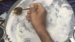 Making a dosa - the popular south-Indian, paper-thin pancake - made of a mix urad lentil and rice powders.