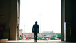Male engineer at entrance of warehouse