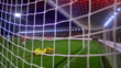 SLO MO Male football goalkeeper jumping and failing to make a save - Vídeo de stock 4K