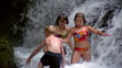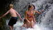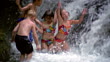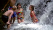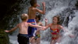 Medium shot children splashing around in waterfall / Stony Brook State Park, New York - Vídeo de stock HD