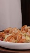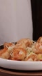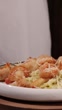 Parmesan sprinkled on Caesar salad with shrimps. - Vídeo de stock 4K