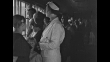 Title: "Pathe's Babies" superimposed over cars and bus parked in parking lot / crowd of people who are there to see the Dionne Quintuplets walk through gate out of parking lot / people standing in hallway looking out windows at quintuplets / quintuplets walking along in line outside holding on to bottom of each other's coats / quintuplets playing in playground / quintuplets on second birthday sitting around table with birthday cakes on it with their doctor, Allan Roy Dafoe, and two nurses / two close ups of quintuplets sitting at table / quintuplets sitting next to Christmas tree with man dressed as Santa Claus and two nurses / VS quintuplets playing with presents / Note: exact month/day not known