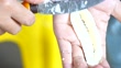 Peel the bananas to make banana chips. - Vídeo de stock HD