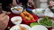 People eating pho soup with fried breadstick in street restaurant - Vídeo de stock 4K