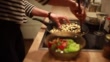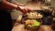 Woman is preparing dinner at her home, cutting the vegetables for the vegan couscous with different oriental spices.
