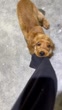Cocker Spaniel puppy is pulling on owner's clothes!