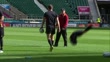 Dan Biggar(Wales) bouncing ball and kicking / player kicking / Dan Biggar kicking / GVs Hallam Amos / GVs Matthew Morgan / GVs Hallam Amos / GVs of Twickenham stadium