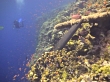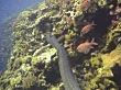 Giant Moray Eel swimming in and out of beautiful Coral Reefs in the topics. Filmed in clear blue water, in warm seas.