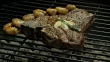 Shrimp and a Seasoned T-Bone Steak with Butter and Rosemary Cook on a Barbecue Grill