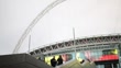 LONDON, ENGLAND - NOVEMBER 17: Spectators arrive at Wembley Stadium ahead of the UEFA Nations League 2024/25 League B Group B2 match between England and Republic of Ireland at Wembley Stadium on November 17, 2024 in London, England. (Footage by Ryan Pierse/Getty Images)