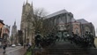 GHENT, BELGIUM - DECEMBER 12: A statue representing the painter Jan van Eyck and his brother stands next to the Saint Bavo's Cathedral in the historic center on December 12, 2023 in Ghent, Belgium. The Belgian city of Ghent wants to avoid overtourism, and has taken steps to limit the number of tourists. One of the mayor's key measures concerns accommodation as no new B&Bs can be opened, and from next year, Airbnb accommodations will have to pay a 6 euro tourist tax. (Footage by Vincent Isore/IP3/Getty Images)
