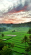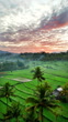 Sunrise aerial view of Mount Agung, Beautiful view of rice fields with Agung Volcano at sunrise, Aerial view of terrace field in Sidemen Valley