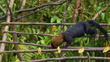 Curious tayra stealing bananas from bird watching trap in Mindo, Ecuador