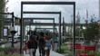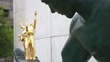 The 'Spirit of Detroit' statue and generic footage in downtown Detroit, MI, USA on June 23, 2017. Shots: Shots: wide shot of walkway as family approaches camera full shot of the spirit of Detroit statue on display CU of golden statues being held by the Spirit of Detroit statue CU of seal reading "the City of Detroit" wide shot of crowded sidewalk as people walk by shot of sign reading "Hart Plaza"