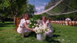 The wedding planning team is decorating the tables with floral garlands. - Vídeo de stock 4K