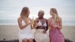 Video of three multi-ethnic women toasting with beer on the beach