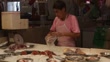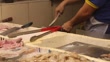 A vendor bags a cut piece of fish head at a stall in a wet market in the Tiong Bahru area of in Singapore, on Sunday, June 4, 2017, A vendor bags fish at a stall in a wet market, Close up, a vendor guts fish at a stall in a wet market