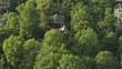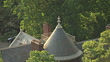 CU ZO AERIAL View of roof of Historic Perkins House at John Browns Hanging Site and tree tops in Charles Town in Jefferson County / West Virginia, United States - Vídeo de stock HD