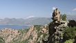 WS View over the fantastic rock landscape of the Calanche of Piana to the sea, UNESCO World Heritage Site / Gulf of Porto, Corsica, France - Vídeo de stock HD