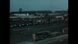 Wide shot footage shows a Nickel Plate Road rail yard in Bellevue. A Broadway Limited 9345 N Scale Nickel Plate Road EMD SW7 Switcher locomotive 232 is seen hauling several boxcars, Ohio, U.S.A., 1952.