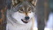 WOLF HYBRID IN SNOWY FOREST; CLOSE VIEW, MENACING, SNARLS - Vídeo de stock HD