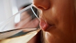Close-up video of human mouth drinking white wine.