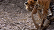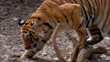 Young adult Tiger walking on muddy land - medium shot - Vídeo de stock HD