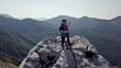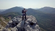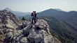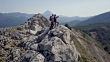 Young couple on the top of a mountain taking pictures with an smartphone - Vídeo de stock 4K