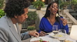 Well dressed Black couple dining outdoors and conversing - Vídeo de stock 4K